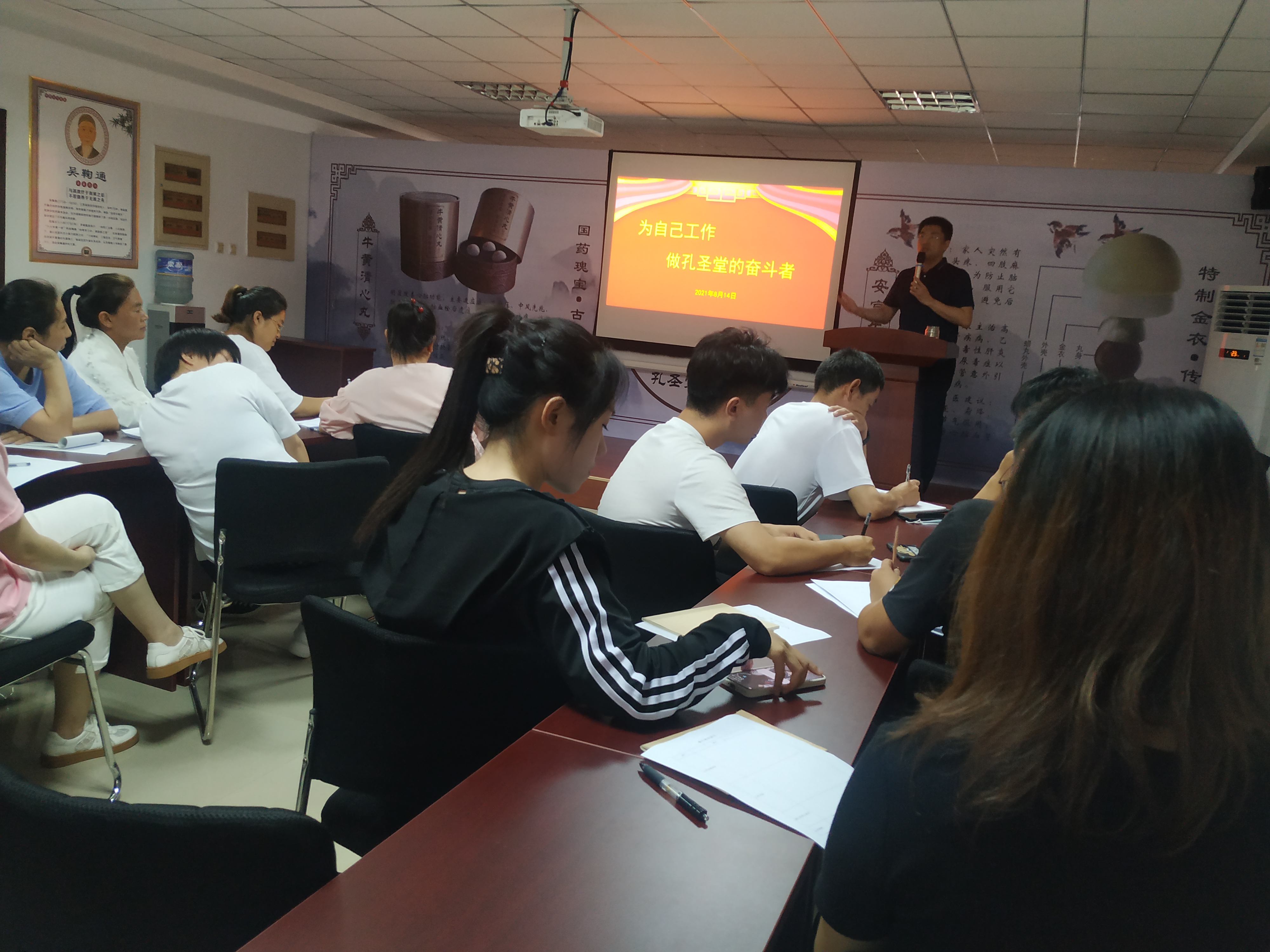 為加強企業(yè)文化建設(shè),鼓勵員工爭當(dāng)企業(yè)奮斗者,2021年8月14日,公司在辦公樓三樓會議室召開了“為自己工作,做孔圣堂的奮斗者”主題培訓(xùn)大會。